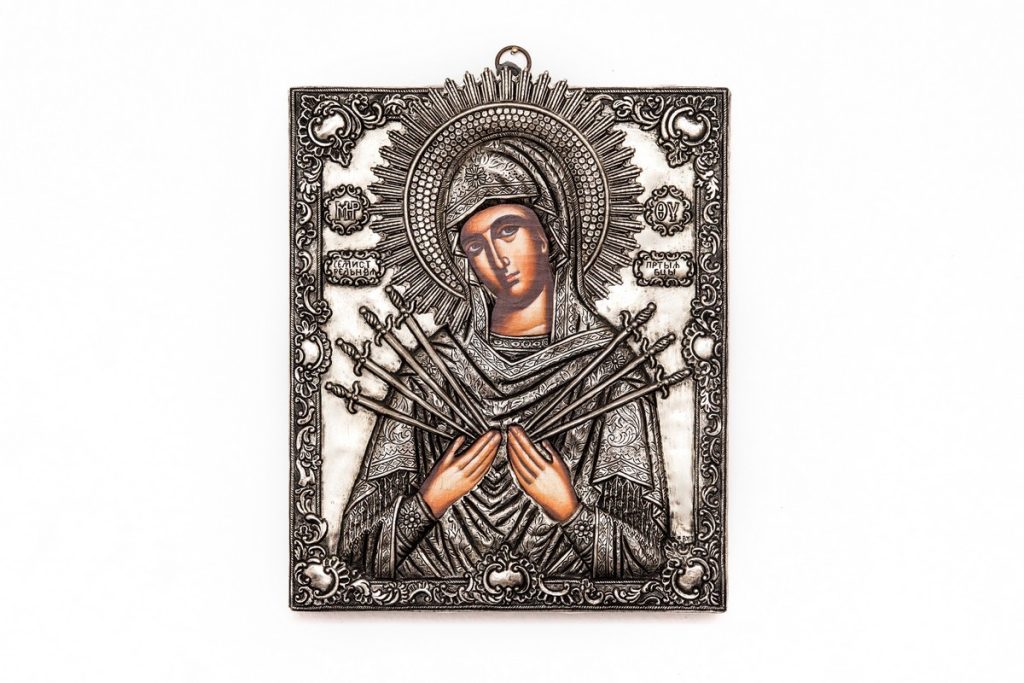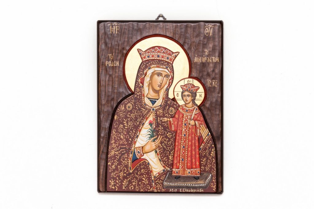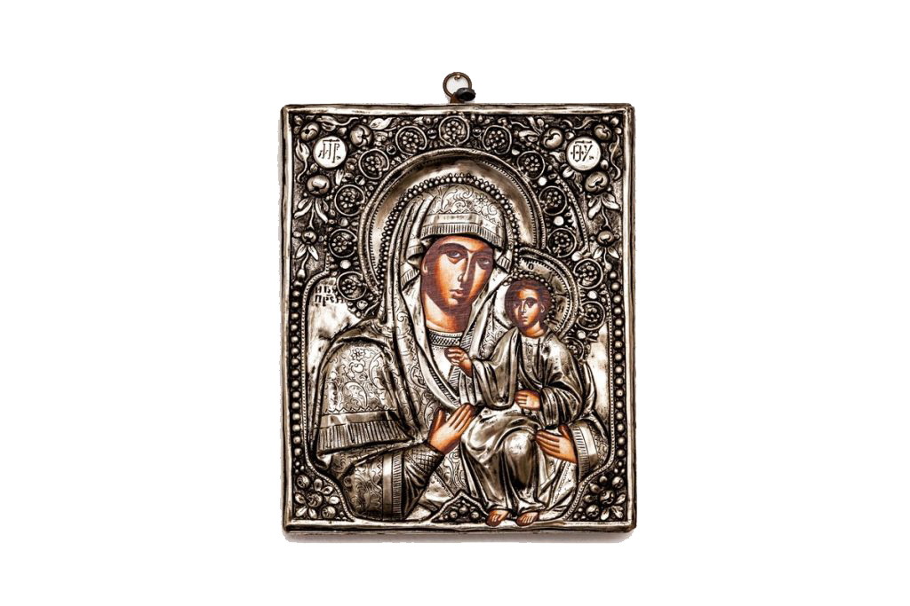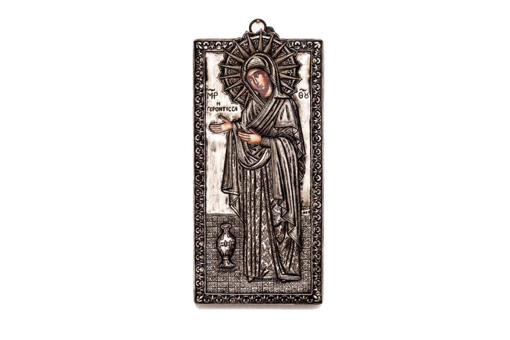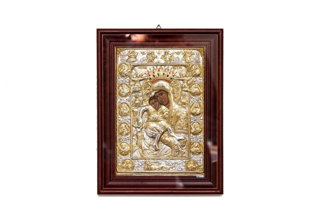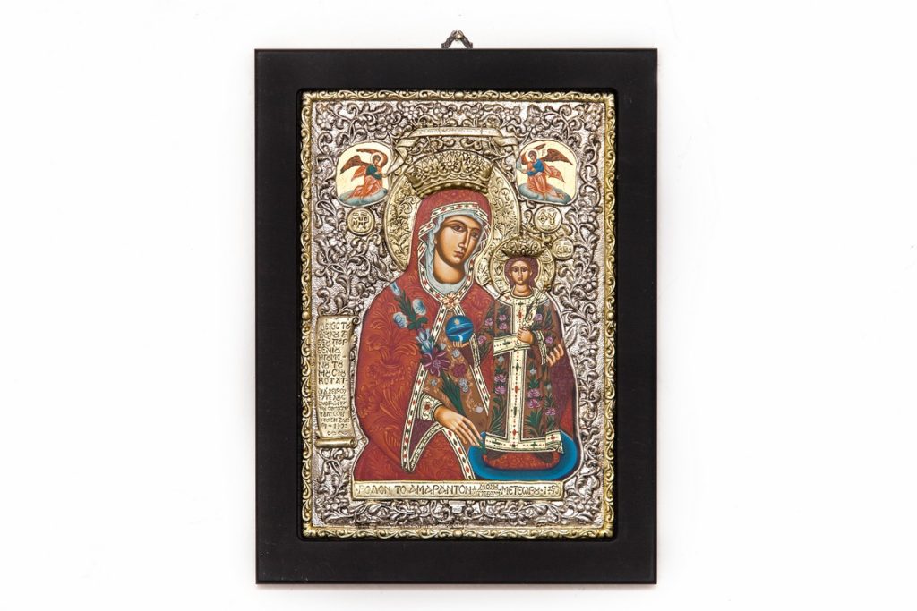 Εικόνες Η Βυζαντινή παράδοση του ορθόδοξου χριστιανισμού, αποτυπώνεται σε εικόνες, σύμβολα πίστης, ακριβή αντίγραφα γνωστών και θαυματουργών εικόνων, φτιαγμένες από ασήμι, ξύλο, μεταξωτυπία ή αγιογραφία.